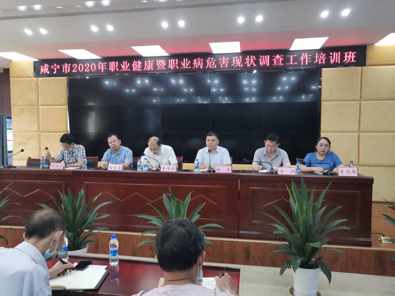 咸宁市举办2020年职业健康暨职业病 危害现状调查工作培训班时间:2020-10-13 7月30-31日,咸宁市职业健康暨职业病危害现状调查工作培训班在市疾控中心六楼会议室举行。市县两级卫健行政部门分管领导、市县两级疾控中心分管主任、市县两级综合监督执法局分管局长、职业病危害现状调查队成员以及相关工作人员共百余人参加了此次会议,会议同时邀请了湖北省疾控中心卫监所副所长梅良英参与指导授课,市卫健委副主任董伟峰、市疾控中心主任钟平出席了本次会议并发表讲话,会议由市卫健委法监科科长闵劲华主持。 会上,钟平重点强调了疾控系统基础能力建设的重要性,对咸宁市职业健康工作提出要求:一是强调在疫情常态化防控当下开展现场培训会的艰难与不易,督促参训人员努力学习,提高业务水平,圆满完成职业病危害现状调查工作;二是提高疾控机构站位,不打断加强基础能力建设。